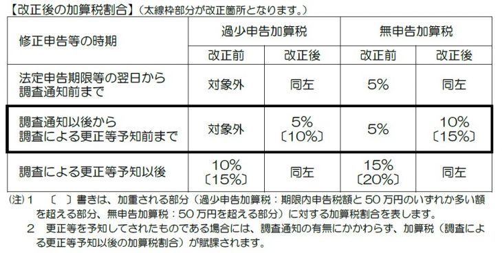 調査通知を受けて修正申告等行う場合の加算税見直し