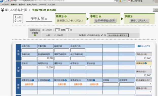 MyKomon名南経営が提供しているクラウド系の給与計算ソフトで、ケイ・アイ&パートナーズ税理士法人(旧:黒瀬税理士事務所)でも取扱いしています。この楽しい給与計算は、難しい操作や計算が苦手でも簡単に給与計算が行えるように開発された給与計算ソフトで、画面の流れに沿って入力すれば給与計算を簡単に行え、給与明細書発行や賃金台帳・給与一覧表を短時間で作成できます。
