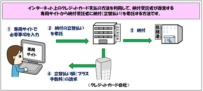 クレジットカード納付とは、国税庁の「▶国税クレジットカードお支払いサイト」にて国税をカード決済して納付する方法です。