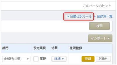 連携サービス入力画面の右上にある「自動仕訳ルール」をクリックして編集を行います。