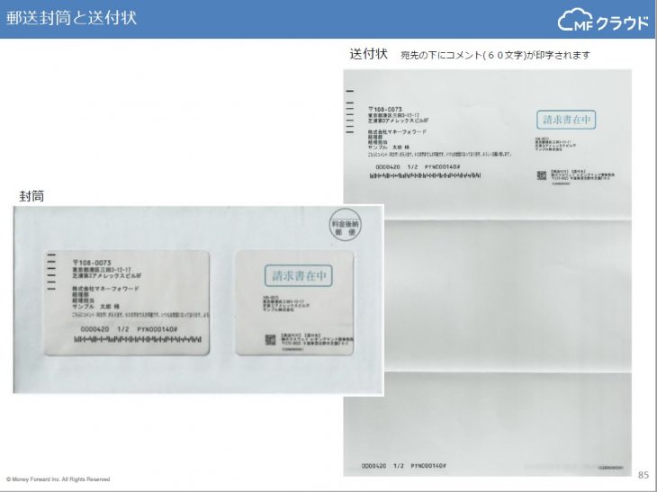 送り状と請求書を封入の上、窓あき封筒に入れて郵送されます。