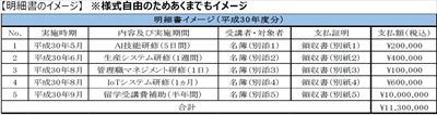 様式は自由ですが、教育訓練費の算出の根拠となる資料の添付が必要です。記載内容は、教育訓練等の実施時期・実施内容及び実施期間・受講者・支払証明などです。イメージは下記のとおりです。